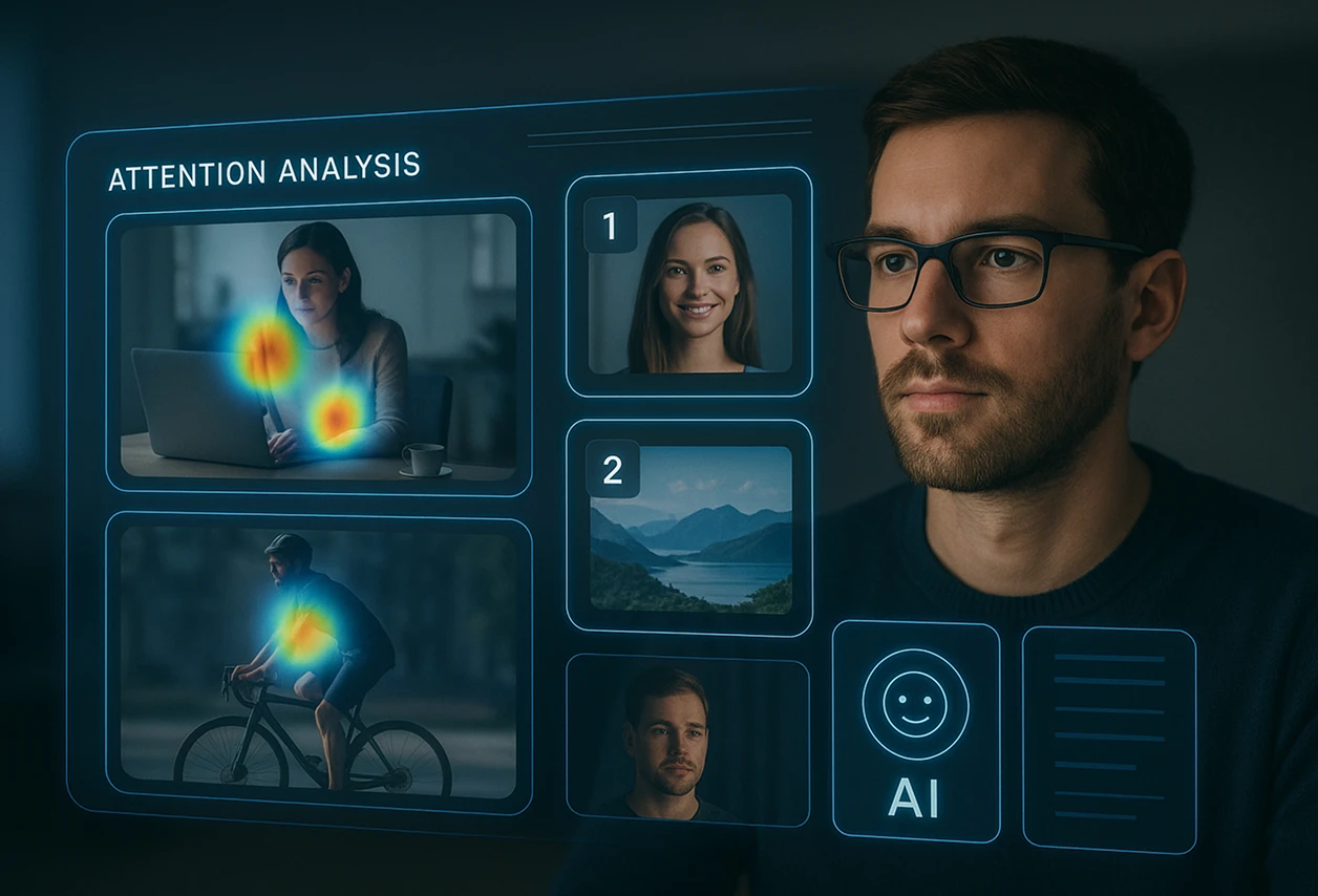 Visual attention is the most precious and fleeting resource in marketing. With AI attention heatmaps, your creative teams move from subjective opinions to objective decision-making, dramatically improving performance metrics. The ability to test and refine rapidly without expensive hardware or testing panels doesn't just reduce risk, it creates an insurmountable advantage over competitors still relying on gut feelings and HiPPO decisions (Highest Paid Person's Opinion).